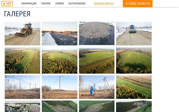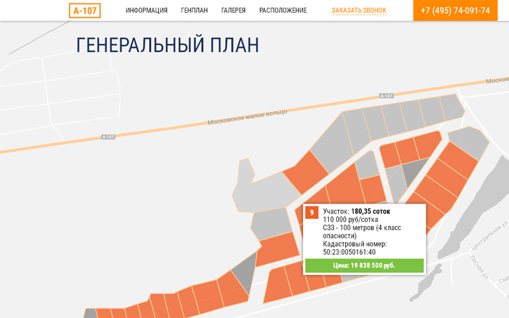 Одностраничный сайт с удобной навигацией, инфографикой, интерактивным генпланом, фотогалереей.